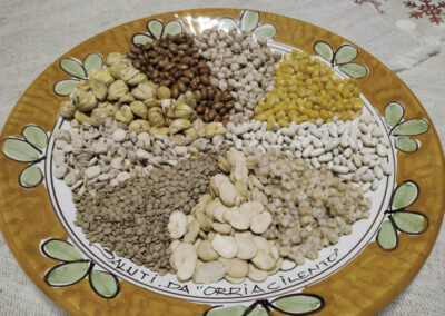 • Una volta cotti, unire tutti i legumi e i cereali in una pentola, aggiungendo un mestolo di acqua di cottura dei vari ingredienti, qualche cucchiaio di passata di pomodoro a seconda del gusto, sale e un filo di olio extravergine di oliva.